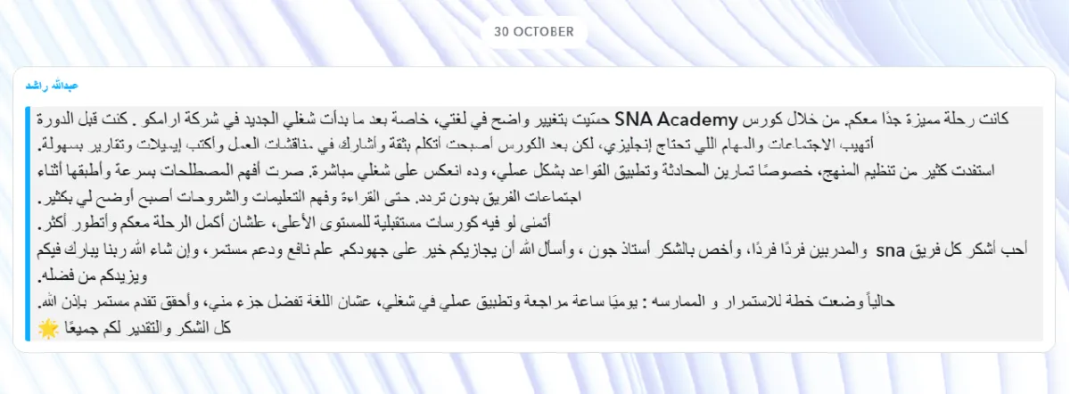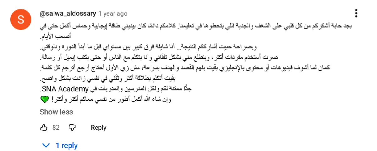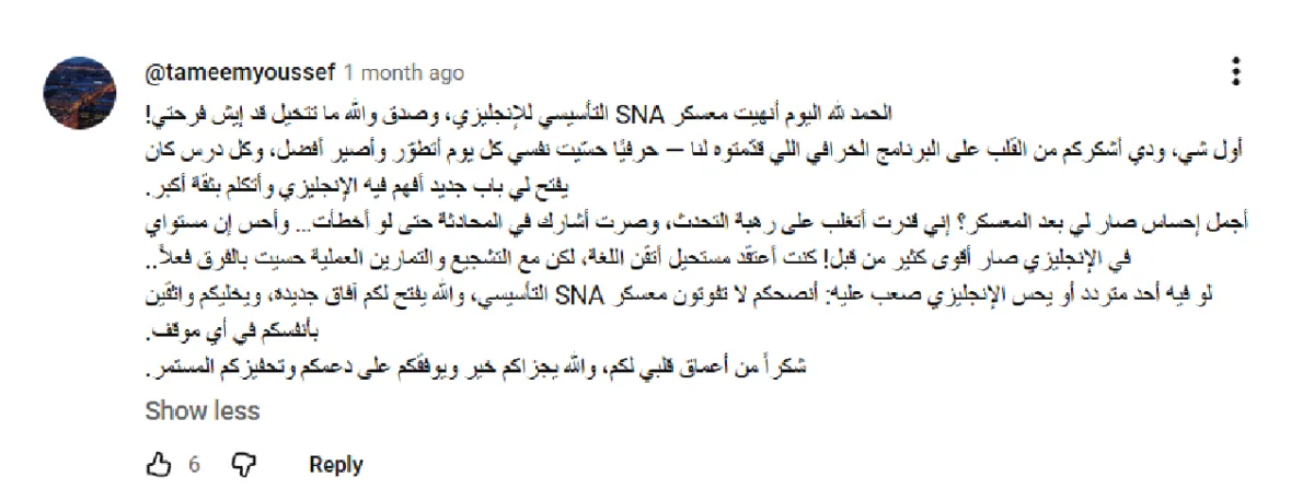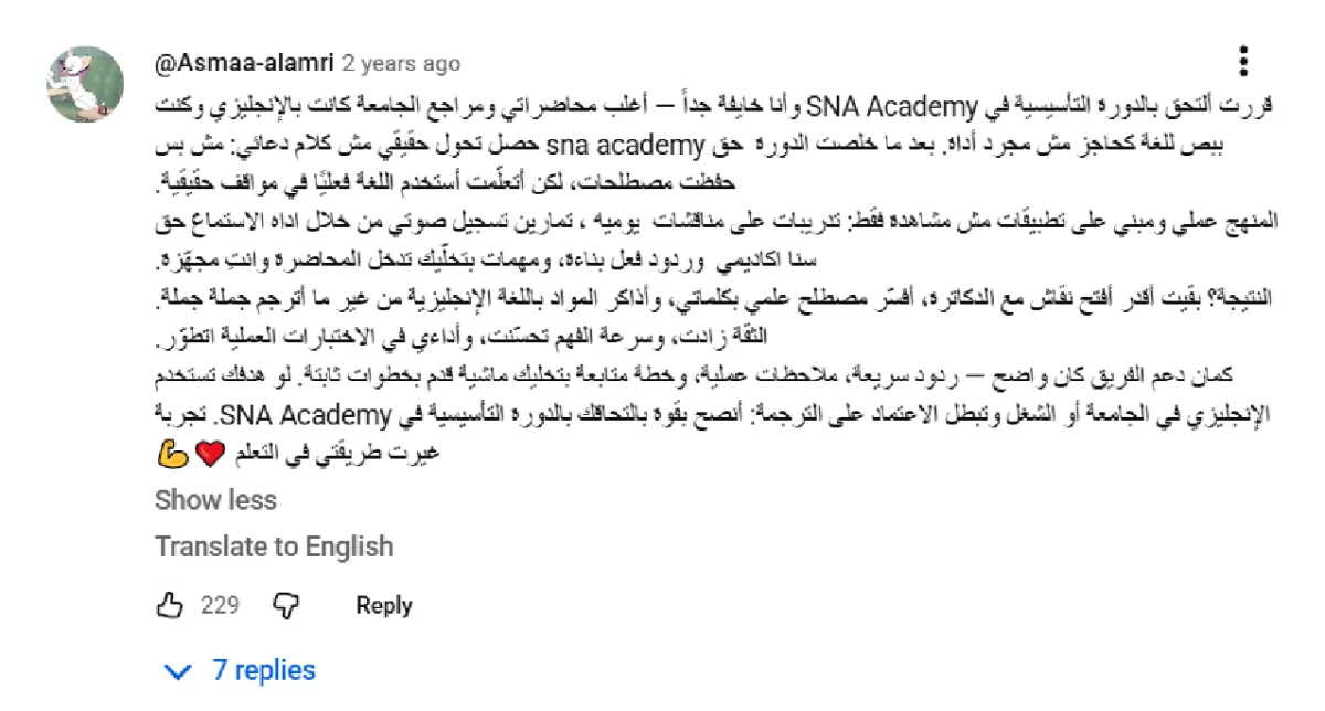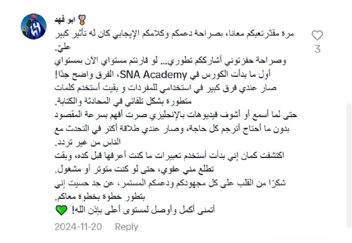 مع نظام الاكتساب الذكي في SNA، هتتعلم كل كلمة وتتفاعل معها و تثبت في عقلك من أول مرة — بدون حفظ أو ترجمة.