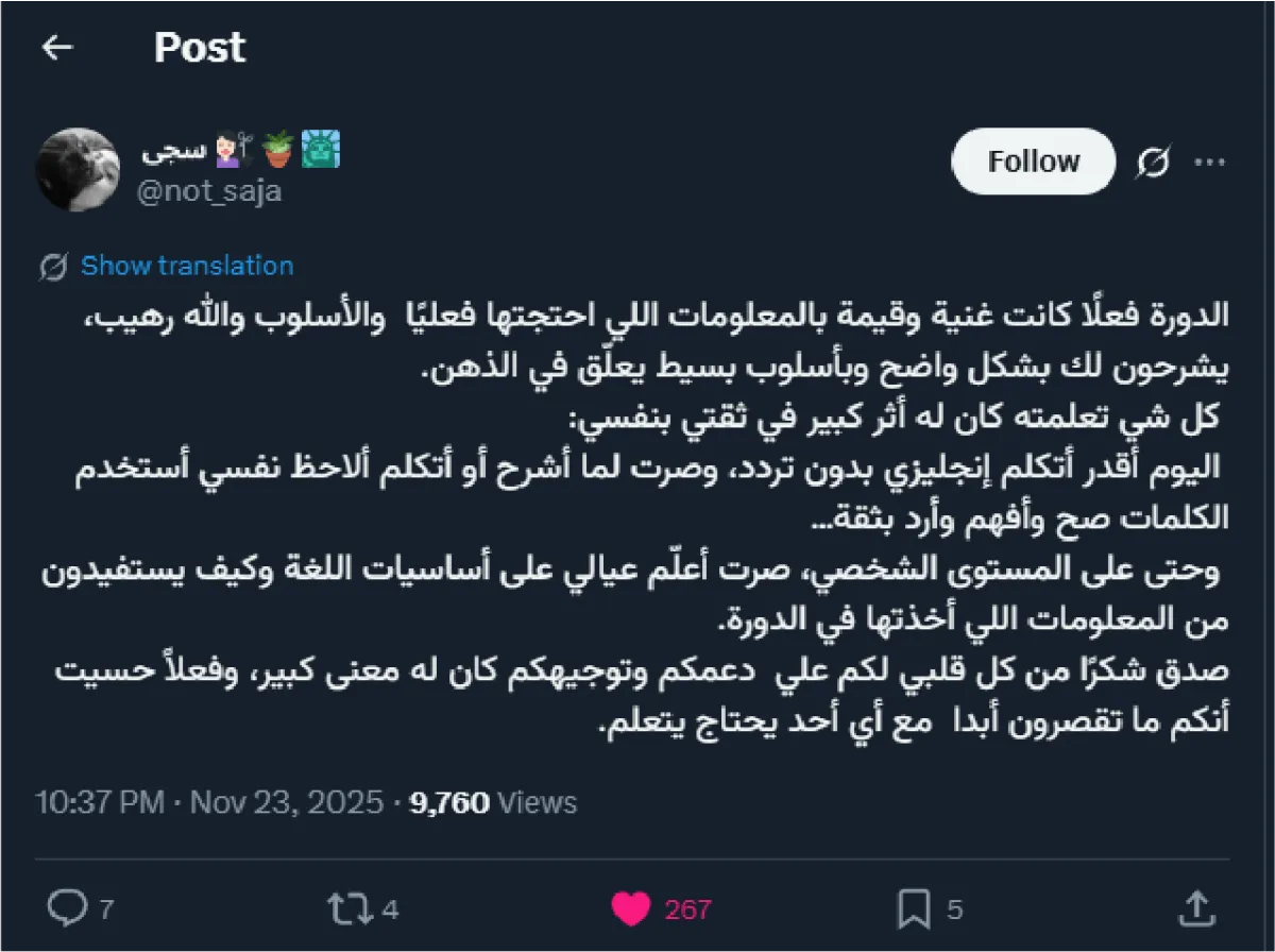 تعلّم الإنجليزي بطريقة ممتعة وفعّالة مع تقنية الـ TPR ، التقنية اللي هتساعدك تكتسب اللغة بدل ما تحفظها .و هي نفس الطريقة اللي اتعلمت بيها لغتك الأم، من خلال الحركة والتفاعل بدل الحفظ والترجمة .