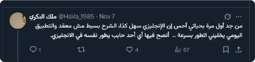 اكثر من 5 سنوات نساعد الناس يتعلّموا إنجليزي من الصفر إلى مستوى الطلاقة، وجمعنا كل خبرتنا في نظام بسيط وعملي يخليك تفهم القواعد بسهولة وبدون ملل. اتبع هذه الخطوات وطوّر انجليزيتك في أقل من ساعة يوميًا — حتى لو كنت تعتقد أن القواعد هي أكثر جزء ممل في اللغة .